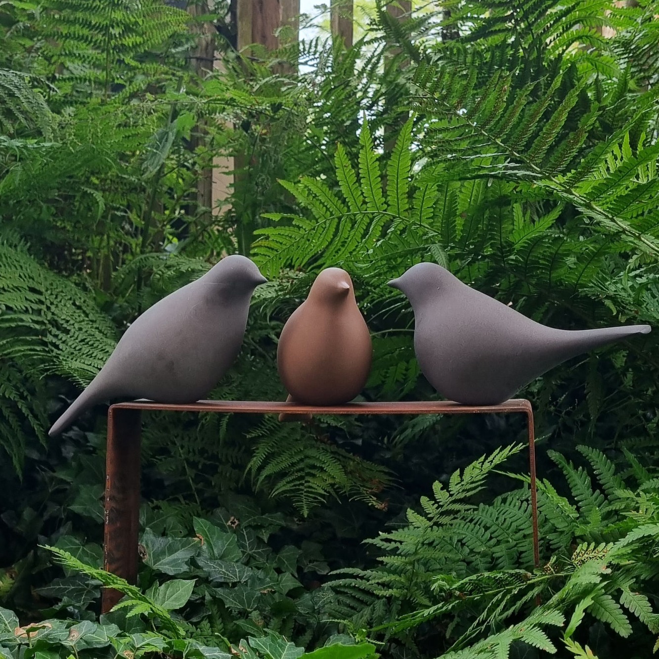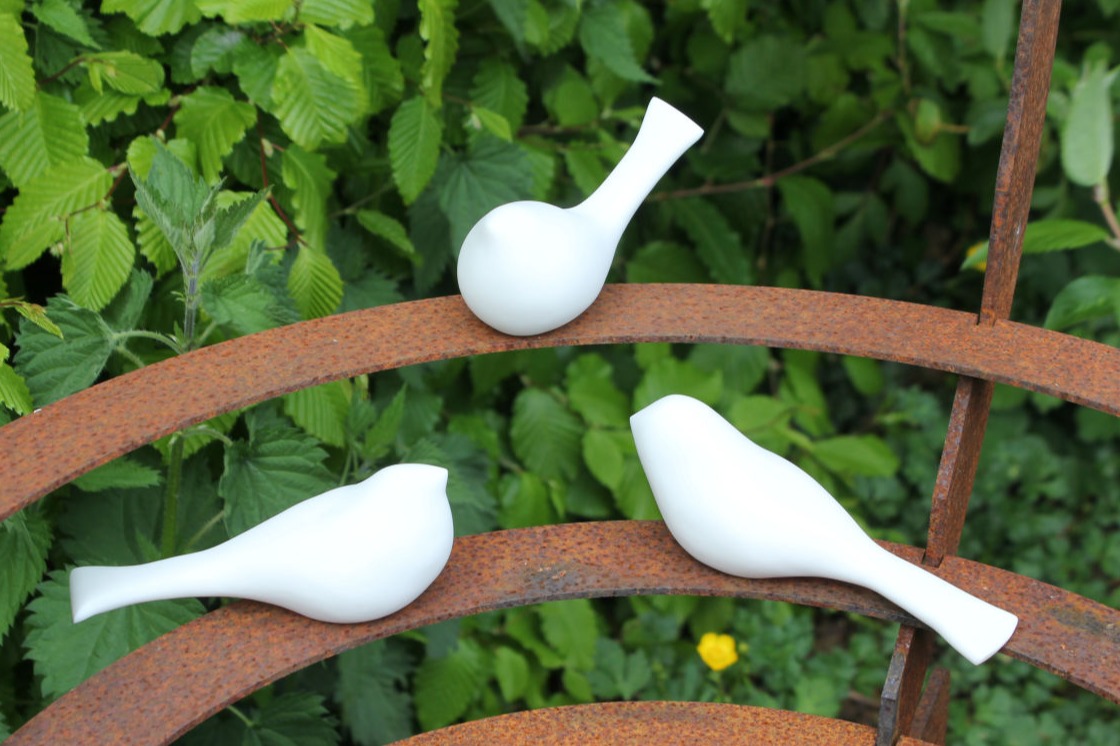 De porseleinen BirdZ kunnen het ganse seizoen in jouw tuin blijven staan. Ze zijn niet vorstgevoelig.