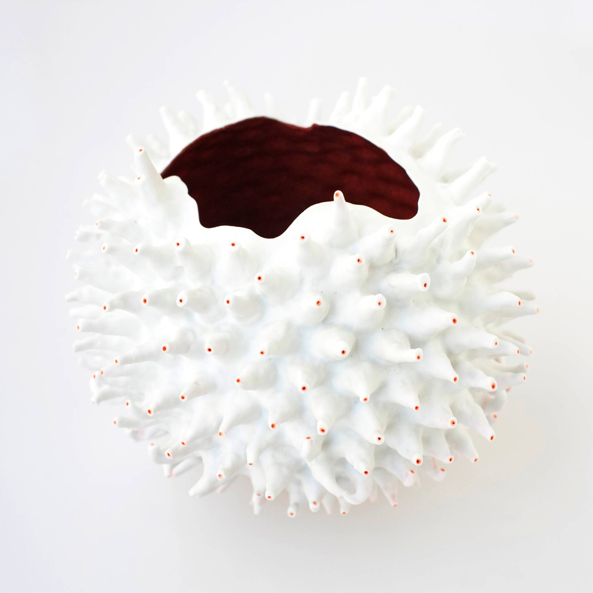 Nathalie creëert kunstwerken geïnspireerd door de natuur, vooral de onderwaterwereld en vogels. Haar werk brengt de natuurlijke schoonheid naar onze huiskamers en tuinen en stimuleert een dialoog over kwetsbaarheid en menselijke impact. Porselein, met zijn pure en fragiele karakter, is haar perfecte medium. De collecties “PrickleS” en “BirdZ” reflecteren respectievelijk onze relatie met de zee en de wereldwijde connectie tussen vogels en mensen. Haar laatste werken stralen een groeiende fascinatie voor vogels uit, zacht en verfijnd als een ode aan de natuur.