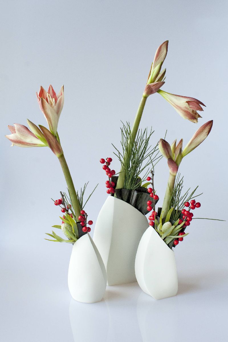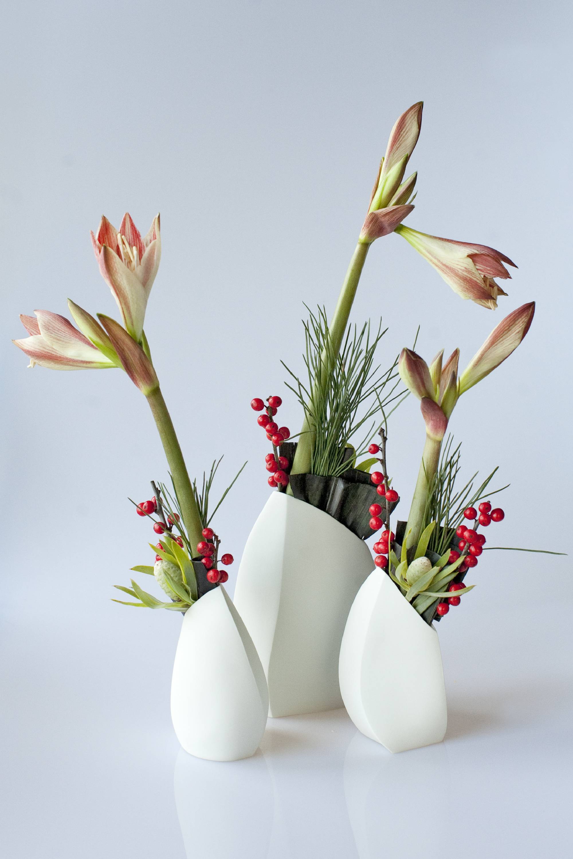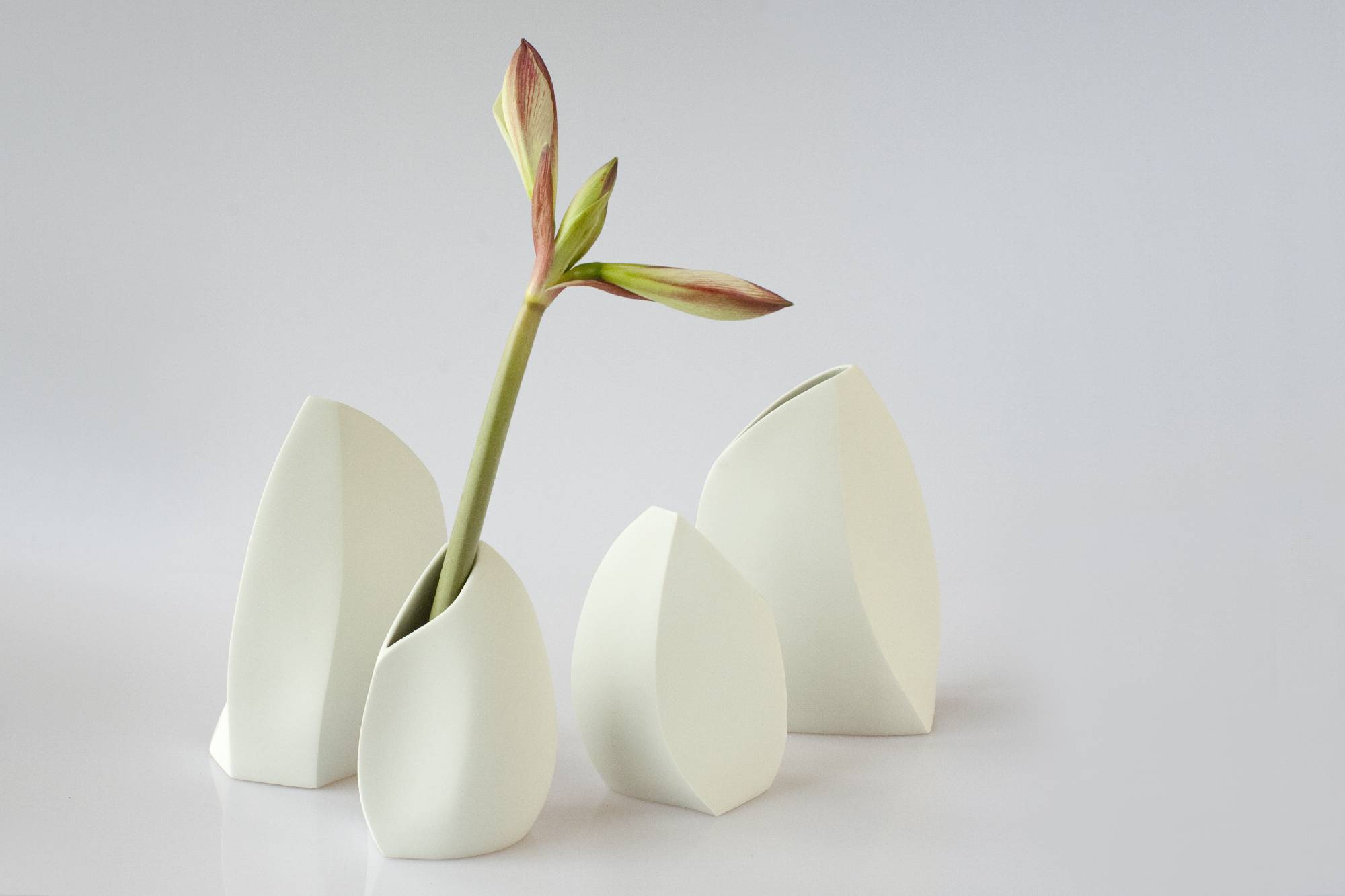 Asymmetrisch van vorm en vanuit iedere ooghoek verschillend. Op deze manier zijn meerdere combinaties mogelijk wanneer je ze samenbrengt en blijven ze fris ogen na elke herschikking. De Barnacle vaasjes zijn verkrijgbaar in 2 formaten.